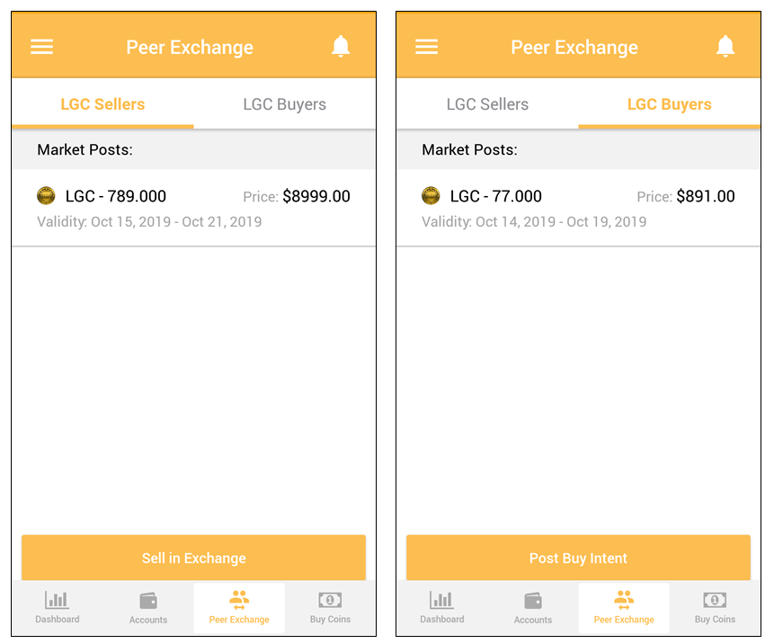 On the other hand, seeing that the market is bullish and you want to cash in your LGCs, you can post a sell offer on the PEER EXCHANGE. Again, everybody who holds an LGC wallet will receive a notification of your selling intention.
